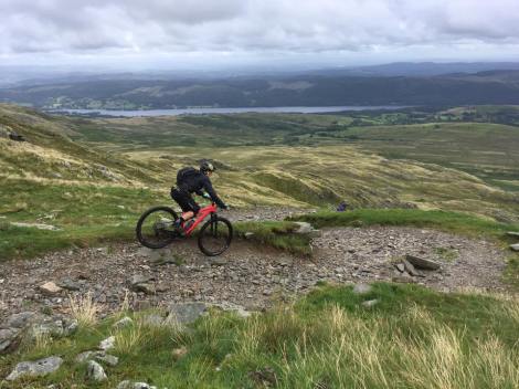 It certainly seemed to do the trick, as it was no time at all before we were all at the top, taking in the views and gearing up for the awesome long descent back down to Torver. After pedaling over the saddle, we plunged into the series of tight rocky bends for a wild ride down the loose trail. The top section is steep and pretty technical in places, but everyone made it down at their own pace, arriving at the bottom with wide smiles on their faces. Once everyone was down, we set off again for the next stage of the descent, down some narrow singletrack through the foliage, stopping along the way to admire the stunning waterfalls. Resisting the urge to join the other swimmers, we continued on down to Torver before rejoining the lakeside track back to our meeting place.