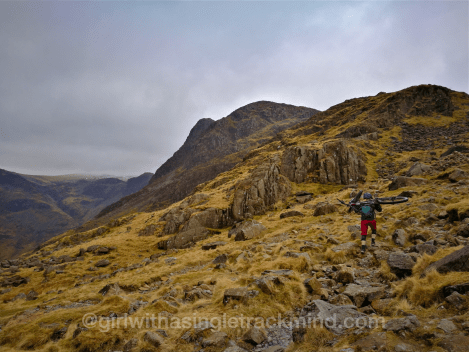 Once at the top, we were rewarded with an awesome long descent to Wasdale Head, which had just the right mix of tech and flow. Had we set off earlier in the day, we could also have been rewarded with a refreshing beverage at the village pub, but with only a couple of hours of daylight left, we had to push on up to Sty Head Pass, with nothing more than a swig from the Camelback and a few Haribos.