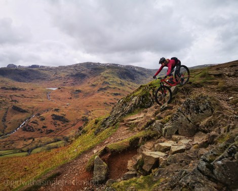 Anyway, there was only one way to find out – ride it! Despite my determination to be open minded, I was still a little uncertain as to how I’d fare on the big wheels, so the first ride was a fairly standard Lake District loop around the bridleways near Ambleside – nothing overly tech, but with plenty of rocks to hop up and blast down.*